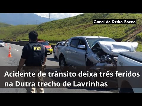 Acidente de trânsito deixa três feridos na Dutra trecho de acidente de trânsito com três vítimas leves mobilizou uma equipe da Polícia Rodoviária Federal na manhã desta segunda-feira dia 27, por volta das 9h, no KM 24 da Dutra, trecho de Lavrinhas.